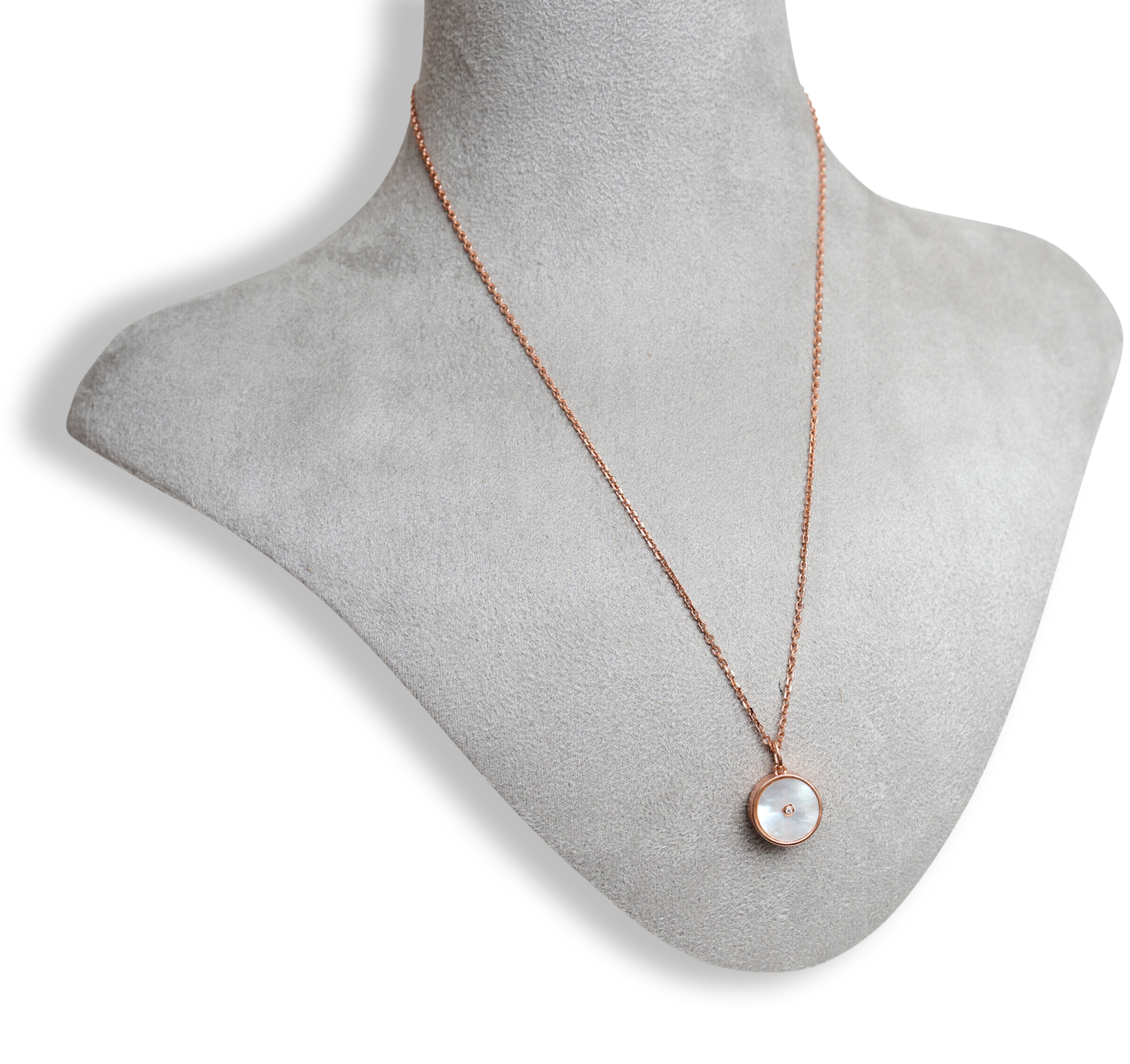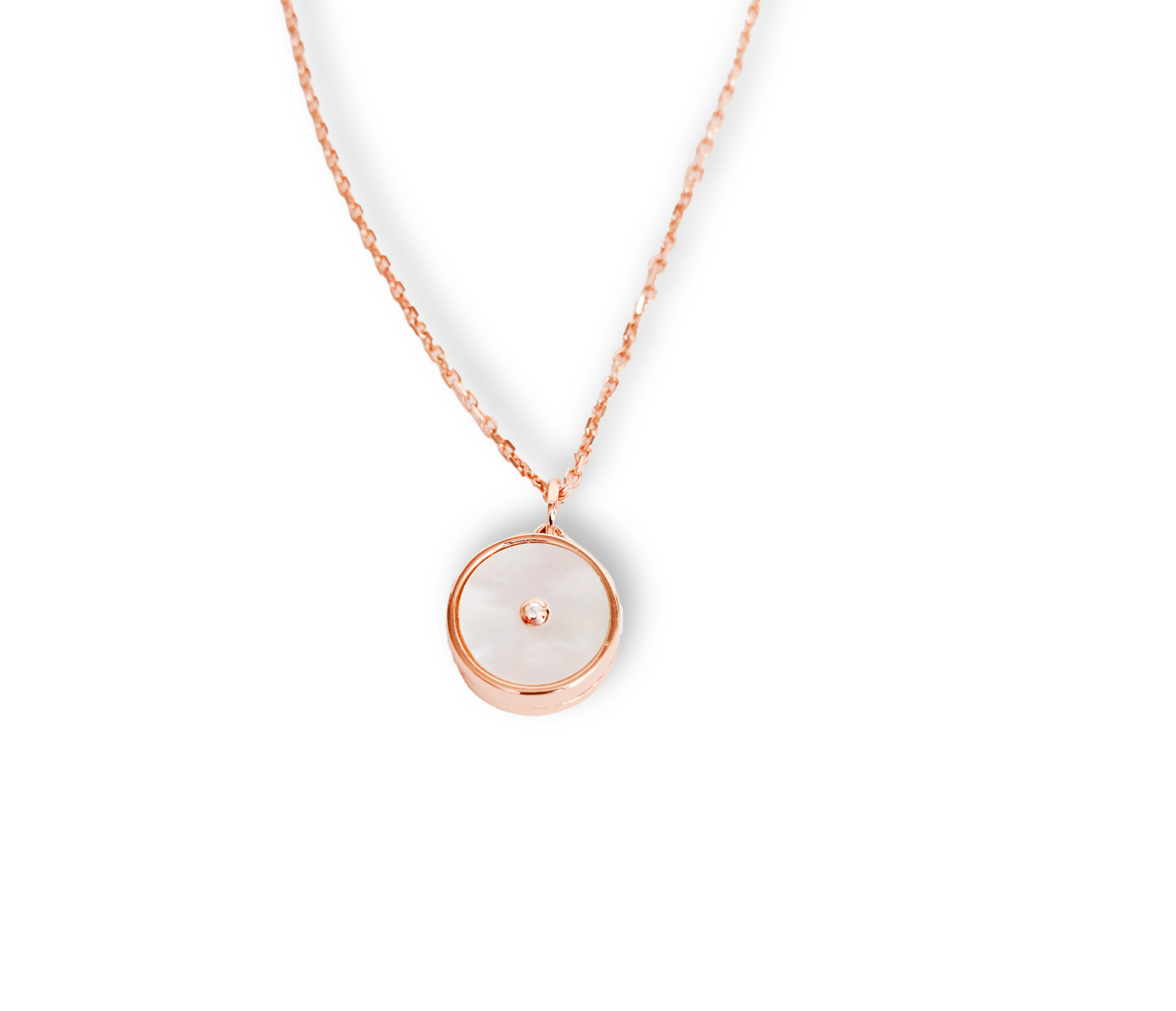 Silver 9.25 gilded with rose gold, mother of pearl and zirconium.